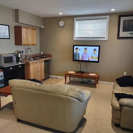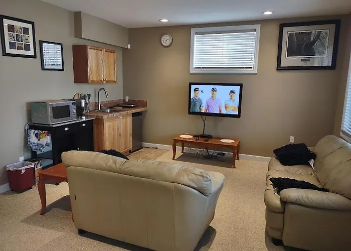 Spacious One Bedroom Walkout Basement Suite Calgary offers views of the garden and a location 10 minutes' drive from the Bowness Park Skating Trail. Wi-Fi is available for guests' business or leisure needs.